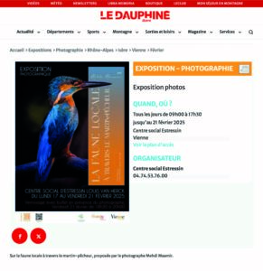LE TRENTE Vienne accueillera mon exposition « La faune locale à travers le Martin-pêcheur », du 23 Mai au 28 juin 2025.