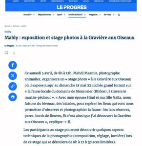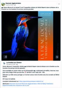 l’exposition « La faune locale à travers le Martin-pêcheur » est visible à la Maison de la Gravière aux Oiseaux à Mably, du 29 mars au 18 mai 2025.